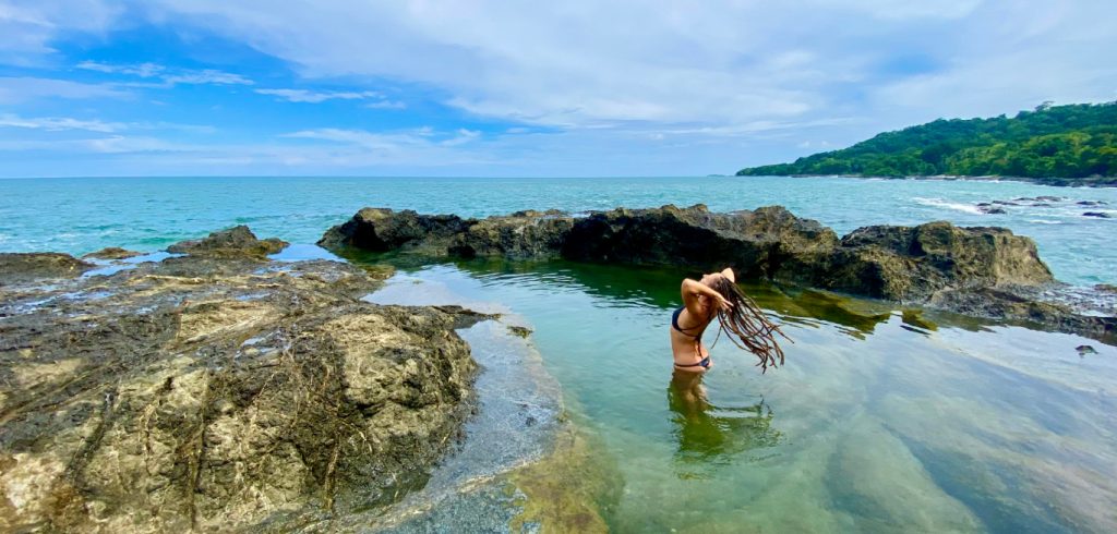 Playa Las Palmeras is the first beach on the way to Cabuya and receives visitors with one of the biggest natural pools in the Montezuma area. This is a favorite beach for locals. It is uncrowded and the large trees provide a lot of shade. Young children can safely play with parental supervision in the gentle river that empties into the ocean. Many local families come to the large gentle river pool to teach their children how to swim.