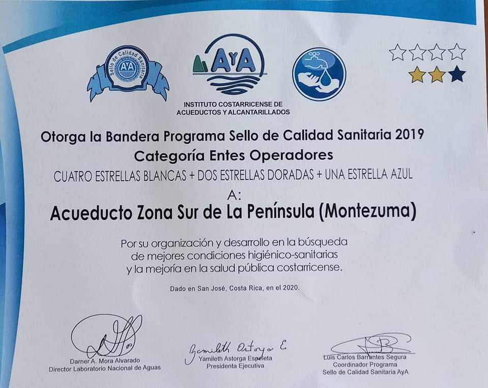 The Montezuma Asada is a non profit organization, led by the community, with the aim of providing residents and tourists with quality drinking water. We are pioneers of the sustainable development of Montezuma, by promoting actions for the protection of nature, climate change and improvement of hygienic sanitary conditions through the “Seal of Sanitary Quality” program. We work daily to ensure the best quality of the vital liquid and in the search of solutions for the expansion of our services and to effectively contribute to the sustainable development of Montezuma.